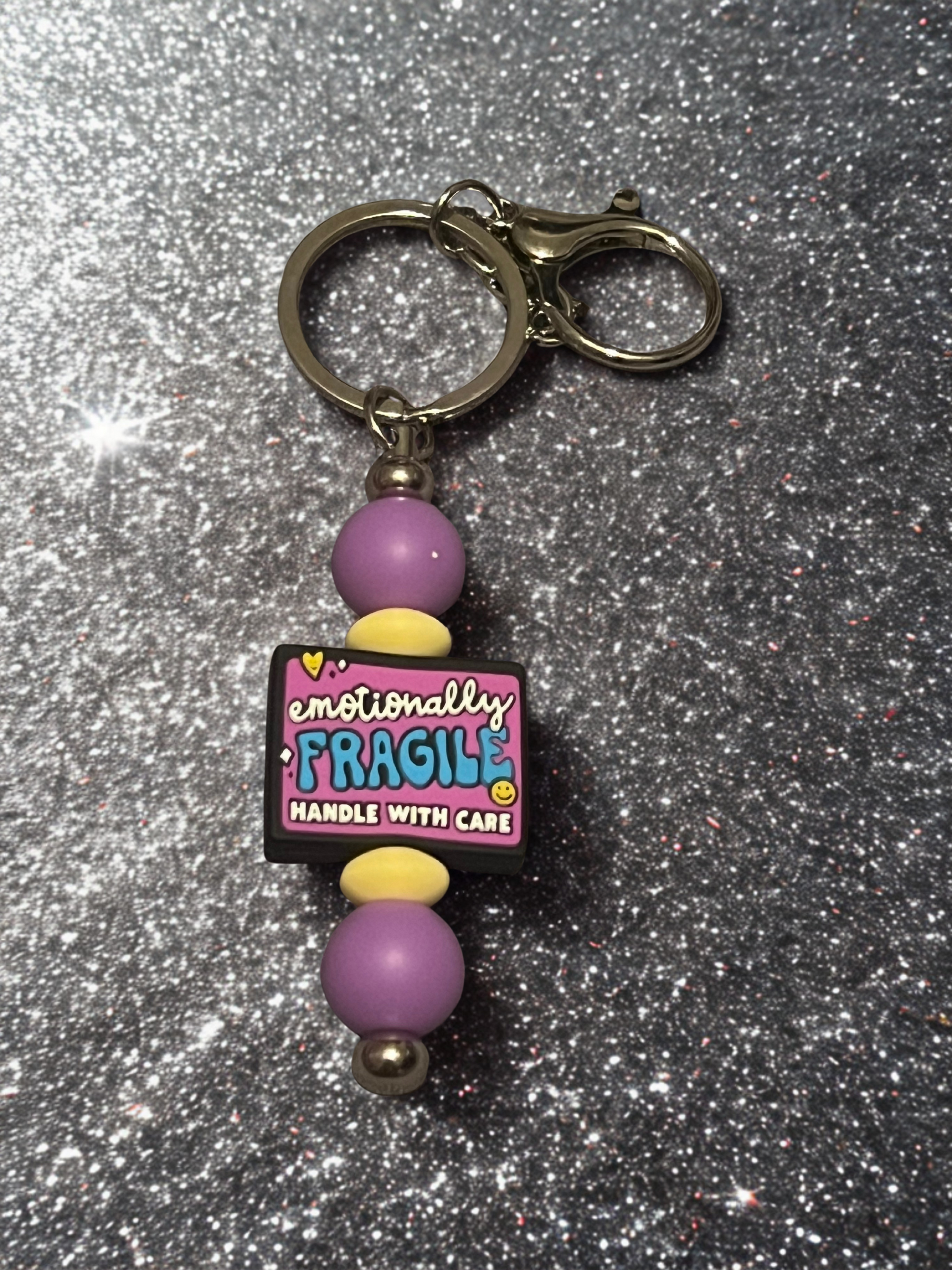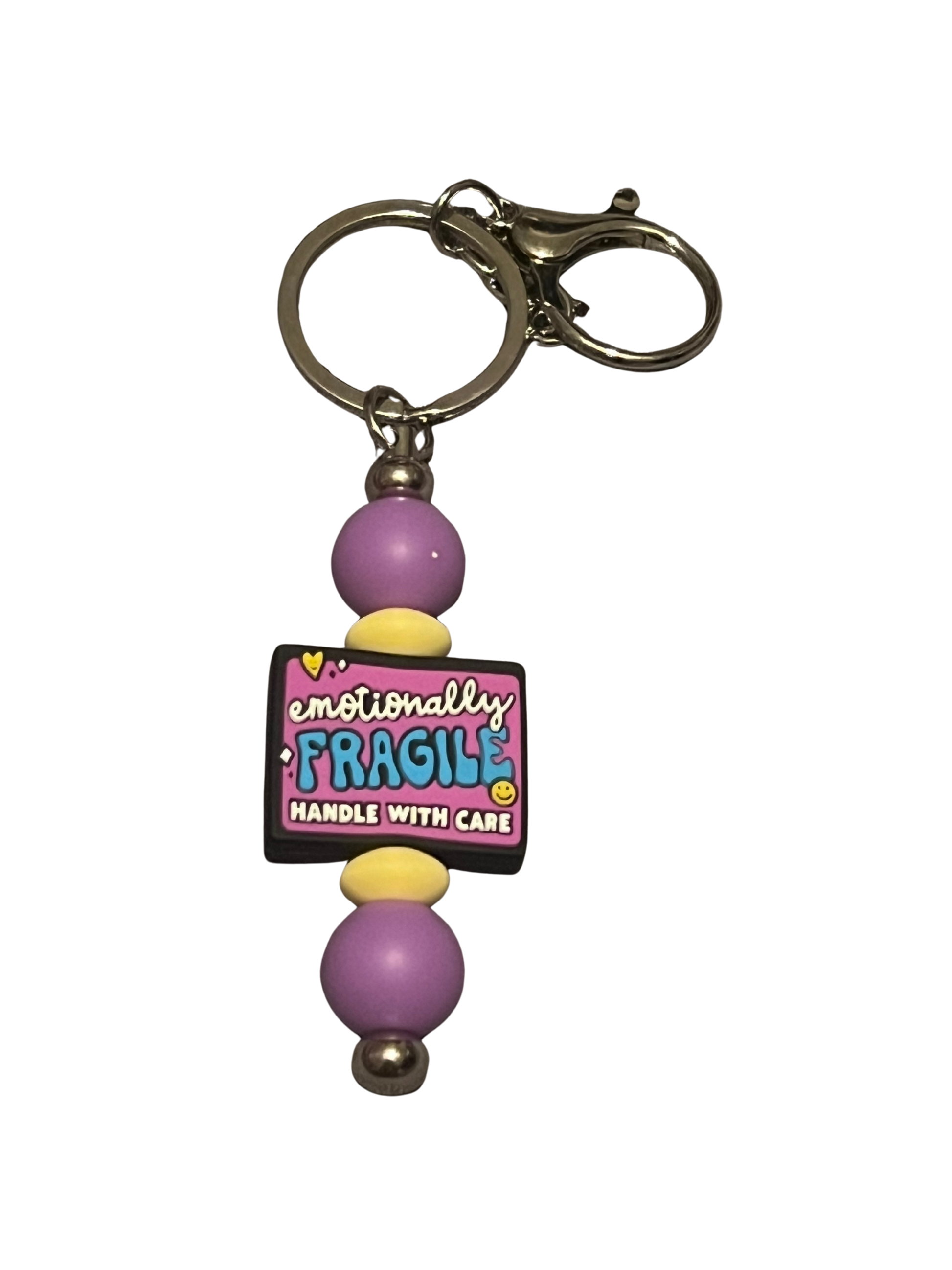 Delicate, dramatic, and definitely self-aware—this handmade beaded keychain says what we’re all thinking. Featuring colorful accent beads and a statement charm that reads “Emotionally Fragile – Handle with Care,” it’s the perfect mix of humor and honesty.