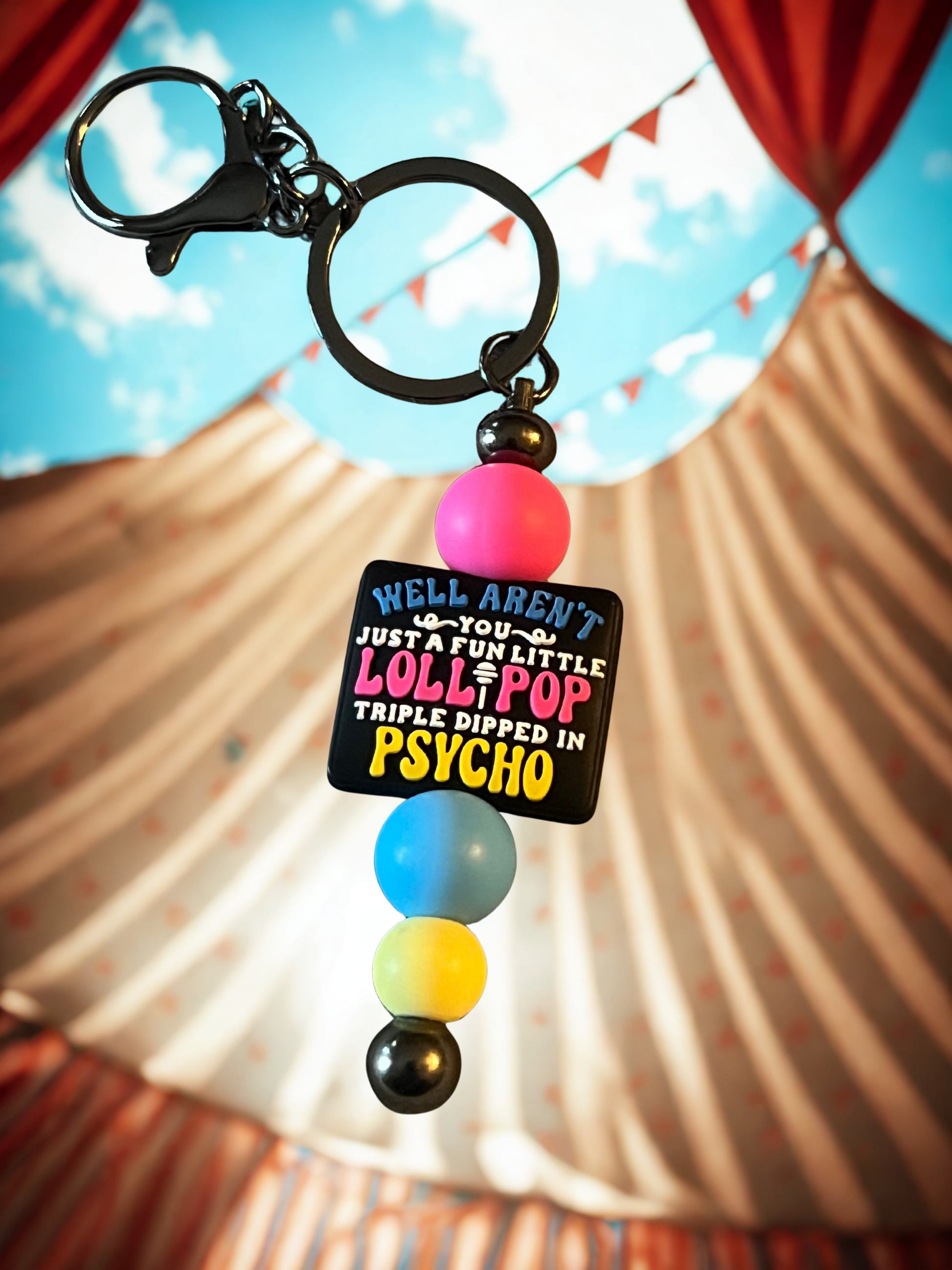 Handmade “Lollipop Dipped in Psycho” Beaded Keychain