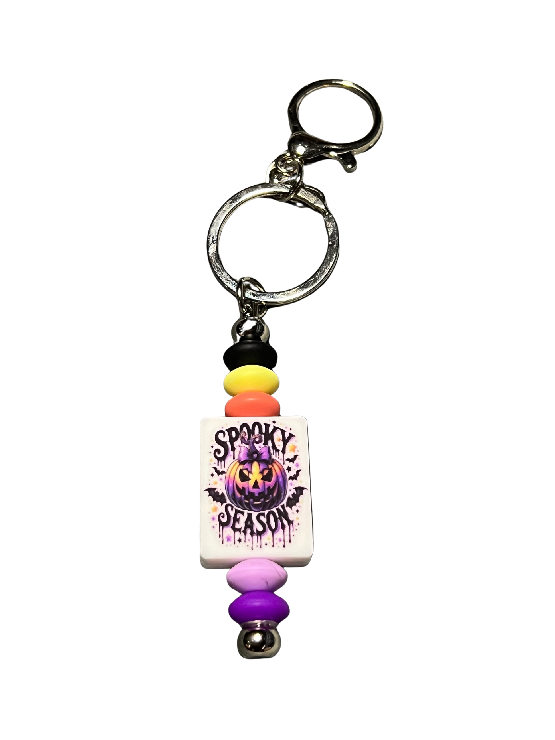 “Spooky Season” Handmade Beaded Keychain 🎃💜🦇