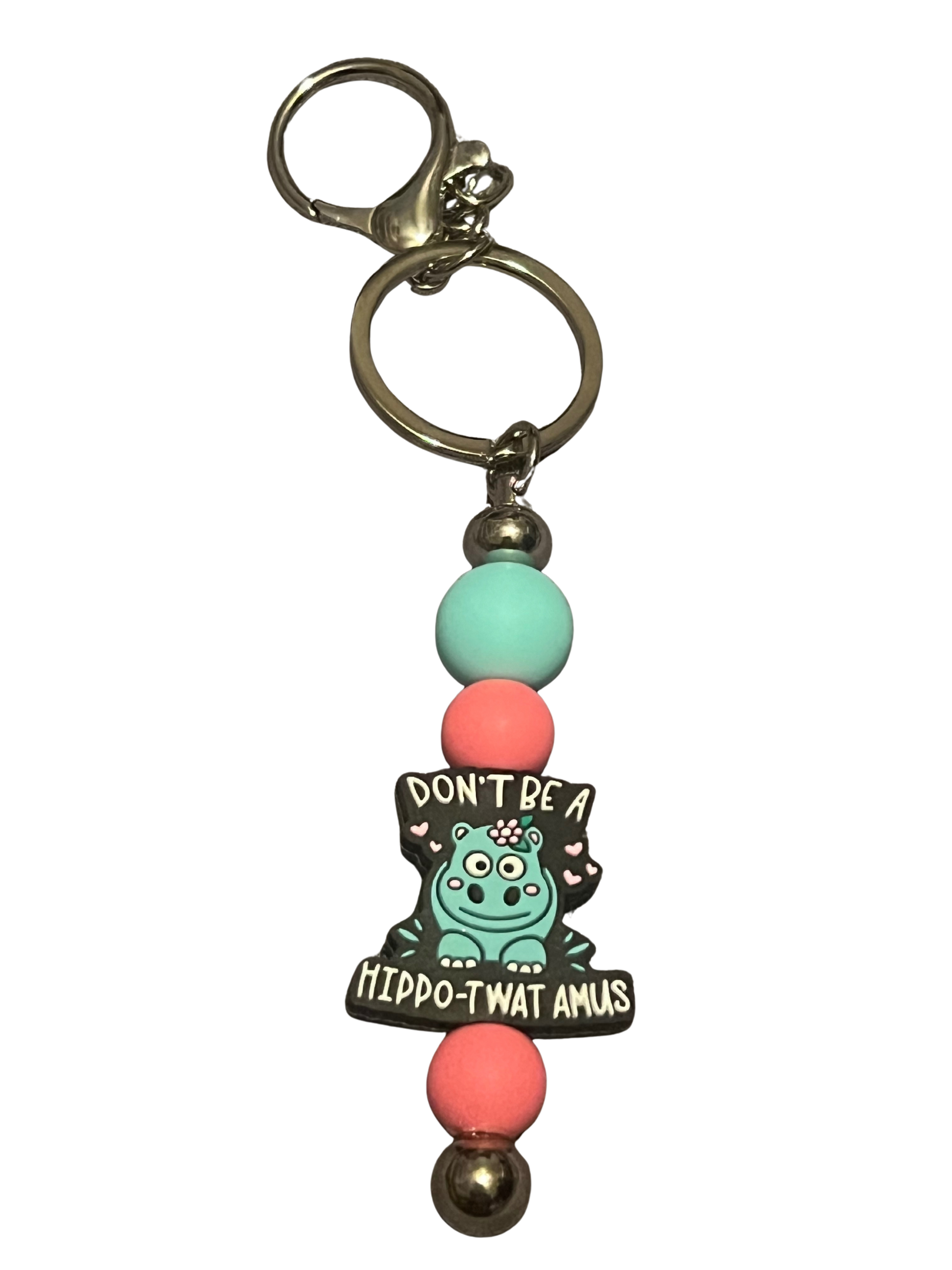 Handmade “Don’t Be a Hippo-Twat-Amus” Beaded Keychain